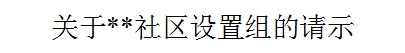 标题。标题要求写清楚社区名称,设置居民小组的请示。例如:关于**社区设置组的请示。字体:居中、宋体、加粗、二号。
