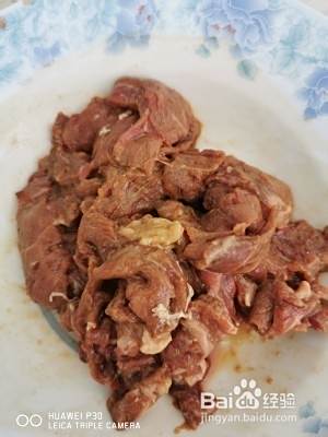 起锅(最好是不粘锅)导入花生油或者色拉油,油热,牛肉倒入锅内,迅速翻炒,把每一片肉都炒到。