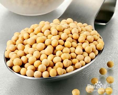 先将50克黄豆放入水中浸泡一夜,膨胀以后用清水淘净,放入盘子里
