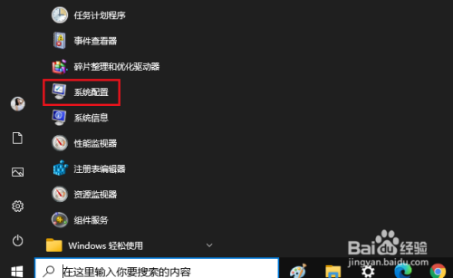 按"开始"按钮打开菜单,然后从应用列表中的 Windows 管理工具文件夹中打开"系统配置"。