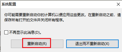 系统配置设置更改将提示您重新启动。 您可以选择立即重新启动或稍后重新启动。