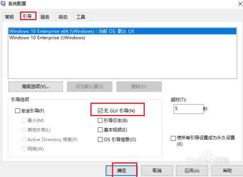 打开屏幕顶部的"引导"选项卡,然后选中"无 GUI 启动"的引导选项。 然后按"确定"按钮。