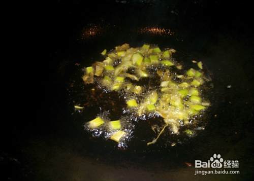 猪肉与油菜同炒的过程中分别加入咸盐、味精、酱油着色。