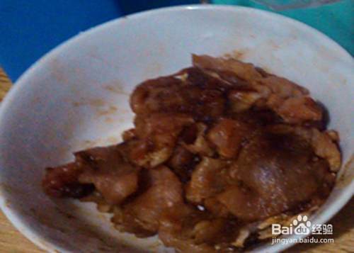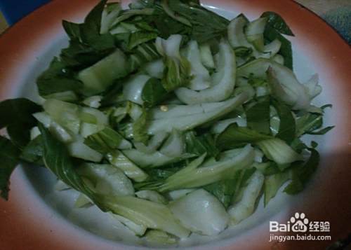 把猪肉切成片状,放入小碗里,然后加入一些淀粉与酱油,搅拌匀后淹喂两三分钟。油菜清洗干净之后,切碎装盘。