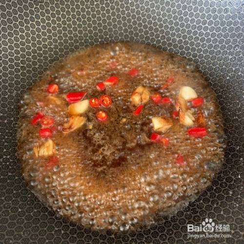 锅中剩一点点油,放入蒜瓣炒香,然后倒入调好的酱汁,加入小米辣,水开后倒入炸好的茄子,翻炒均匀,加入调好的淀粉水,翻均匀后出锅