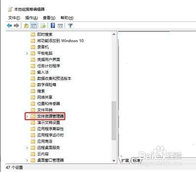 进入本地组策略编辑器界面,依次点击用户配置-管理模板-Windows组件-文件资源管理器展开。