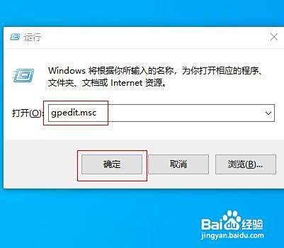 点击键盘上Win+R打开运行,输入gpedit.msc命令点击确定进入。