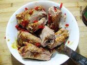 将焯好的排骨加入蚝油、料酒、剁椒腌制十分钟以上。
