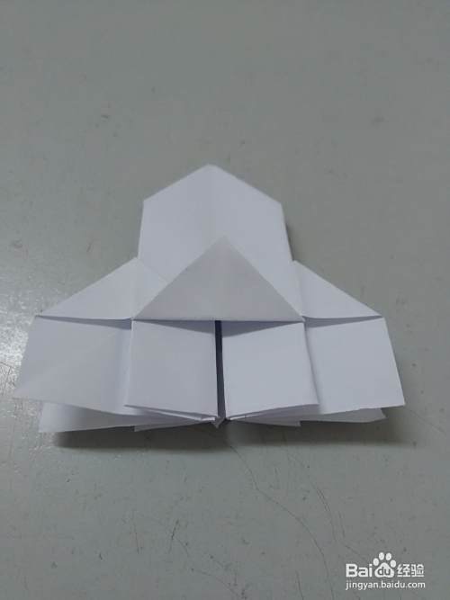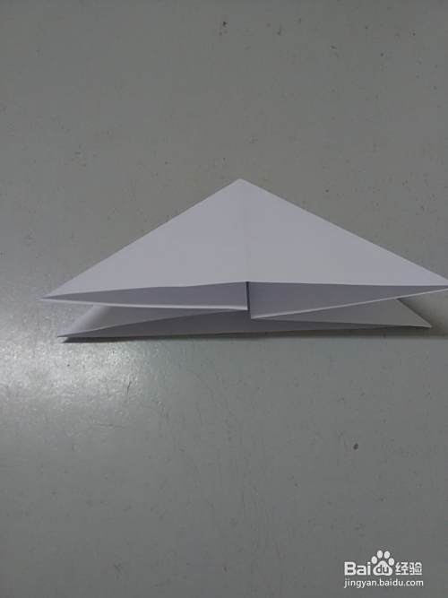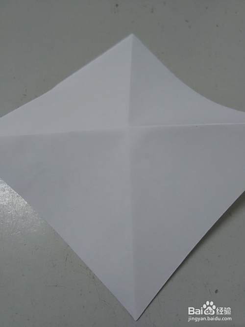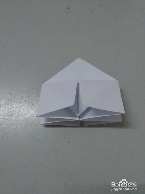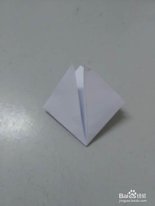 再将三角形两侧的角向上对折,后面两个角也向上对折,折成正方形。
