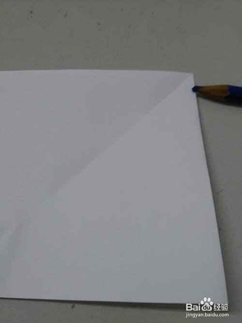 将正方形白纸的两个角向对面折叠,再打开,中间有两条线。