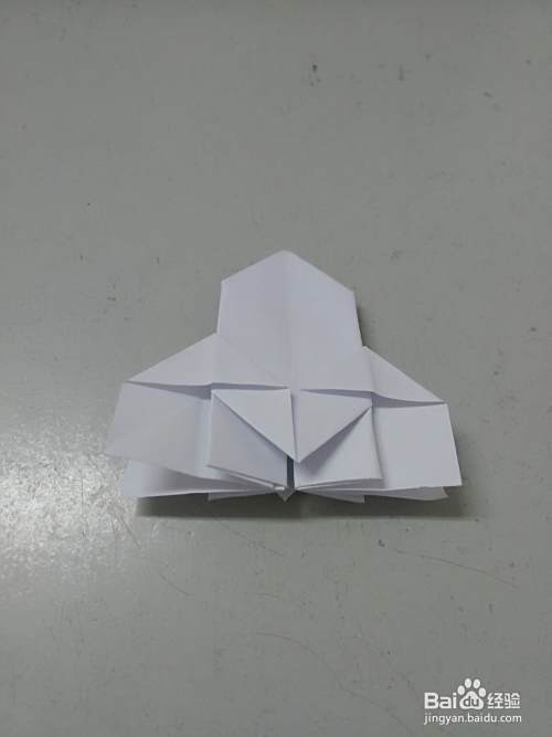 将纸的左右两边向后面对折,折到侧面,下层的左右两边也向侧面对折。