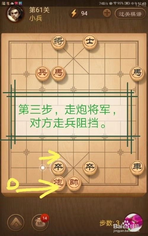 第三步,走炮将军,对方走小兵进行阻挡,如图。