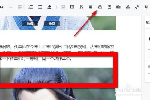 首先在百家号编辑好的文章里面选择一个位置,然后点击右上角的添加商品标志。