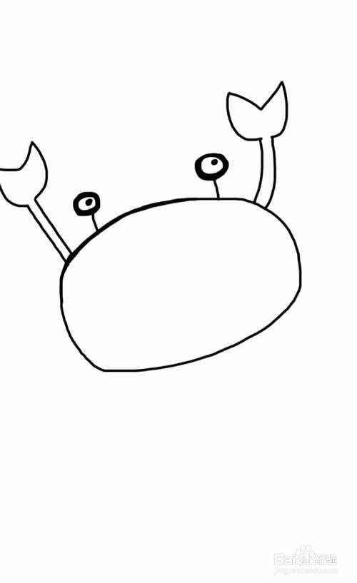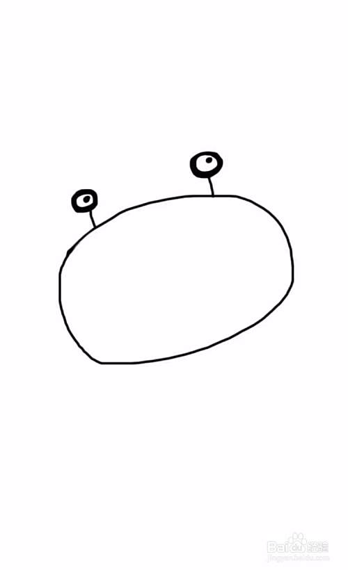 打开平板电脑绘图软件,电容笔选择黑色画笔,在背景图层中心画出一个椭圆形。在其上方画出两个小圆,作为螃蟹的眼睛。