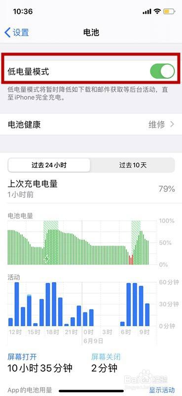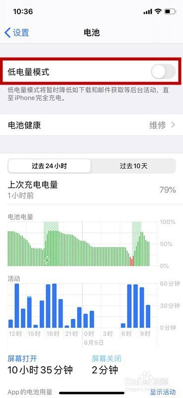 在此之前也可再次进入电池界面,手动点击关闭【低电量模式】来进行结束。