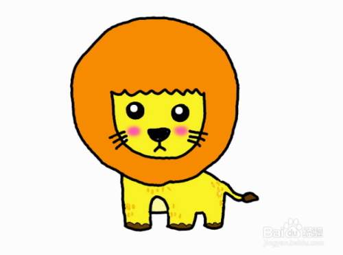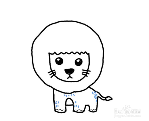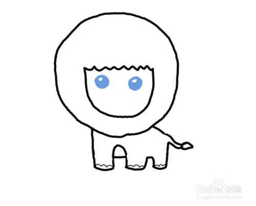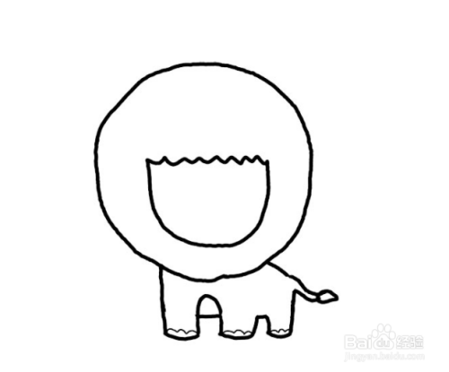 使用长而弯曲的线在头部下方勾勒出不规则的形状。这将形成狮子的身体。