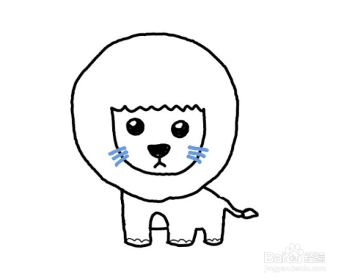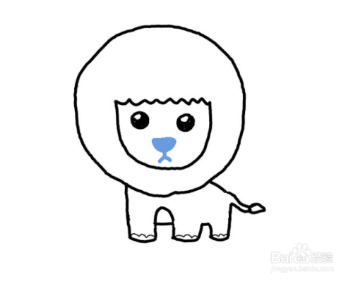 画一个半圈的鼻子。在鼻子下方,画出3条短线,画出狮子的嘴。