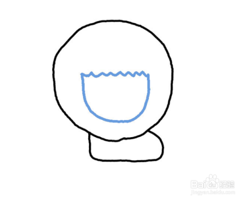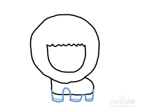 画狮子的脸。在大圆圈中,绘制一个宽大的“ U”形并将顶部与一系列短且弯曲的线相连,这些线在锯齿点处相交。
