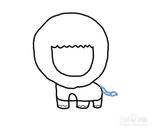 从臀部延伸一对弯曲的线,使这些线汇合在一个点上。在此点以下绘制泪滴形状。这是狮子的尾巴
