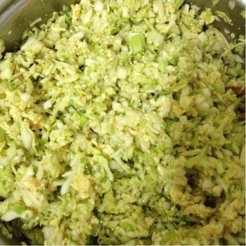 8虾皮适量,用刀剁碎。等鸡蛋凉了就可以拌馅了