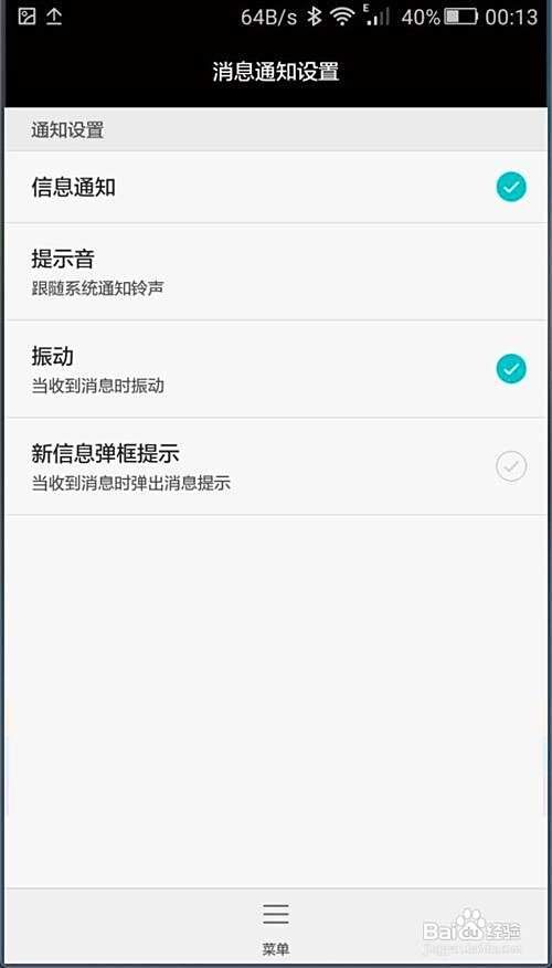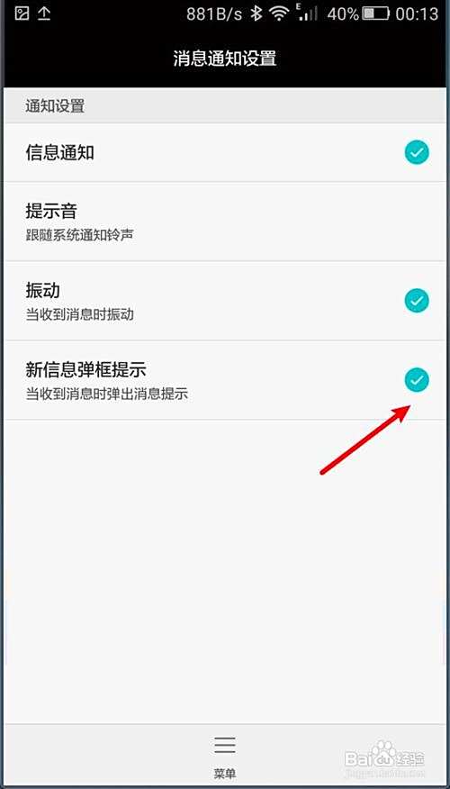 6、在新消息弹框提示上打钩。那么就打开了新消息弹框提示。