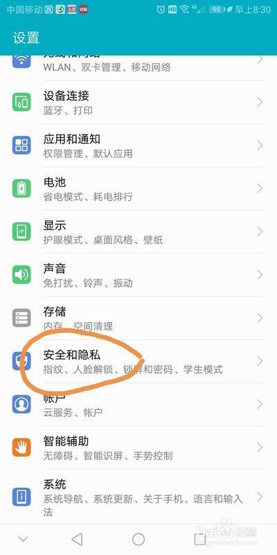 然后进入设置的页面,如图所示,点击并找到“安全与隐私”的进入。