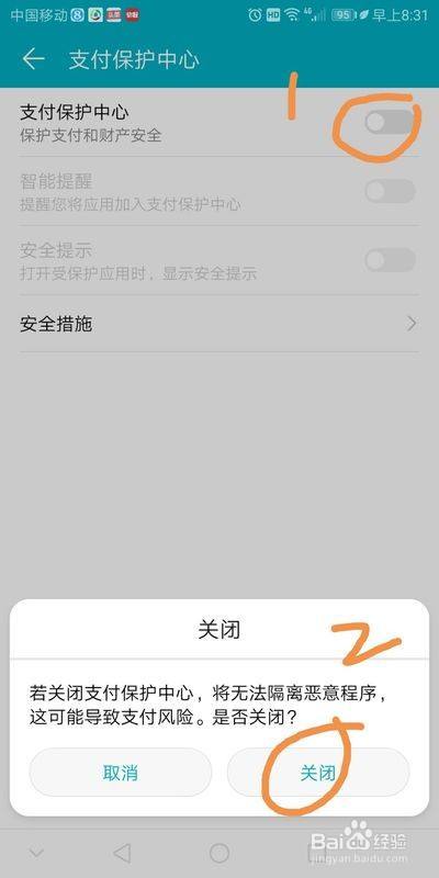 最后,进入保护中心页面,把“支付保护中心”开关关闭,即可完成操作。