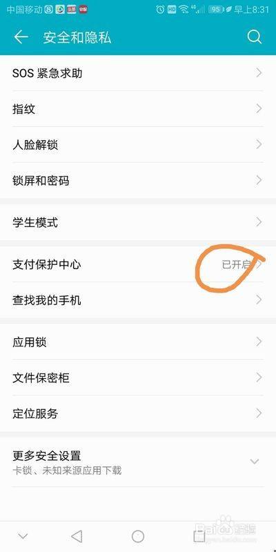 在页面中找到“支付保护中心”,如图所示,右边显示已开启。