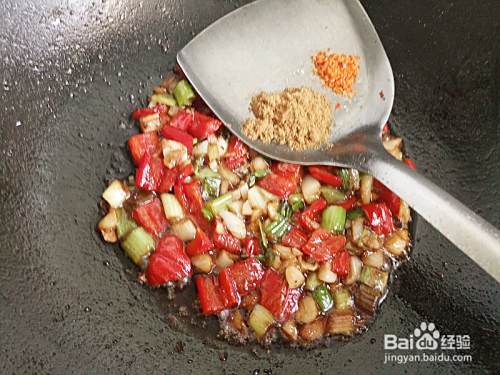 加入辣椒粉和十三香,充分翻炒入味。