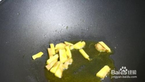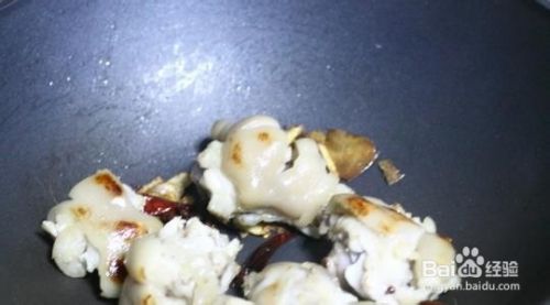 炒至猪蹄表面出现焦黄色时,加入少许酒料翻炒