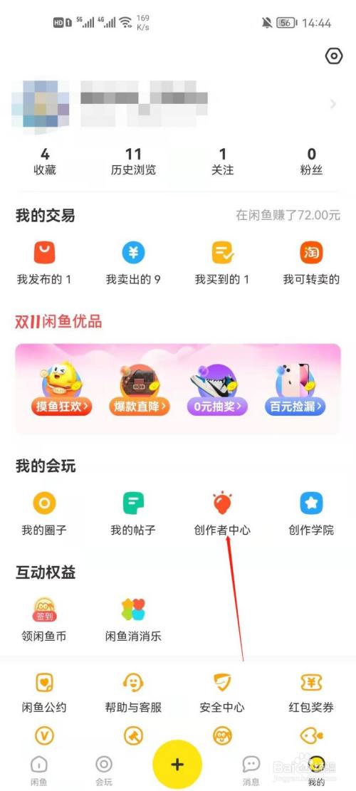 闲鱼怎么查看创作者中心?