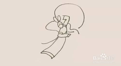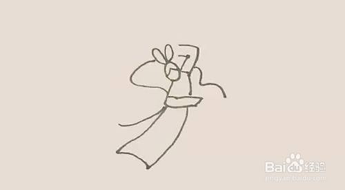 再往下画上两条弧线并连接,作为嫦娥的衣服。
