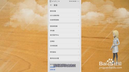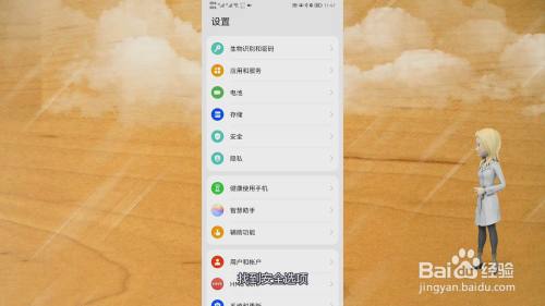 在华为手机的设置界面中,找到安全选项,点击它进入。