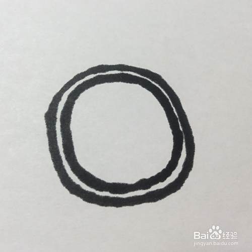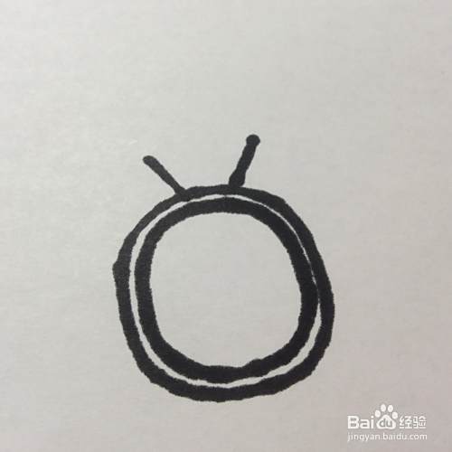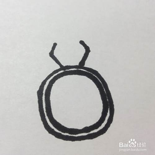 在外侧圆形的上方中间位置,向左右各画一道斜线。