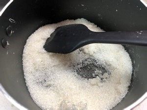 白糖,中小火融化,耐心一点~没看错,就是没有水~耐心耐心~不要搅拌不要搅拌,没融化之前搅拌会翻砂,融化部分可以动一下~可以晃动锅子~这一步实在做不好的加10-20克水吧,会容易点