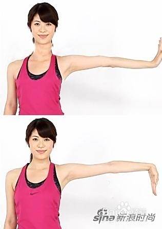 当右侧下臂放于左侧之前,往后压动的时候,是在锻炼左胸,而双手互换,将左臂放于右臂前再往后压,这样就是锻炼右胸哦!
