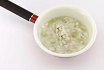 大米熬成软绵的白米粥后,倒入西葫芦块,西葫芦煮软后,倒入鱼肉末,煮开后关火出锅