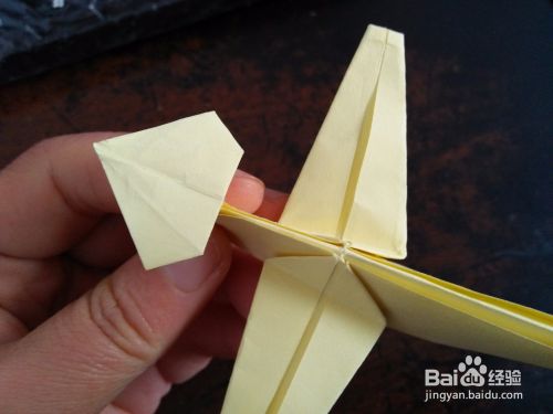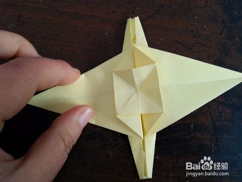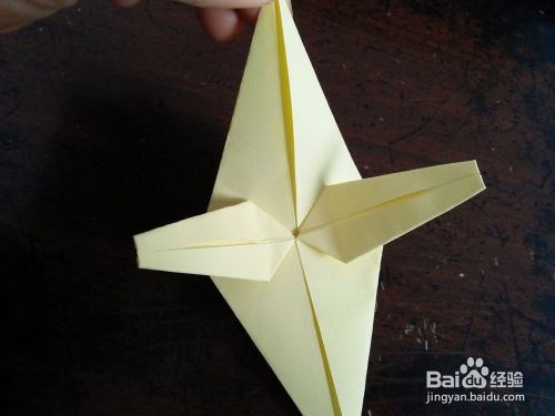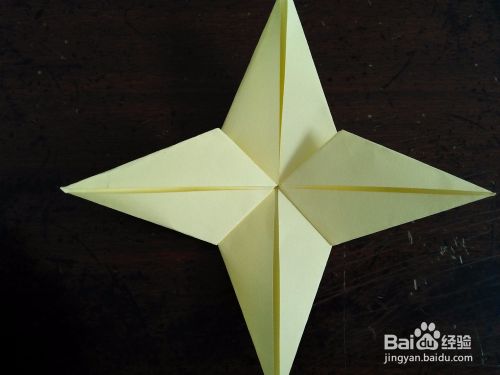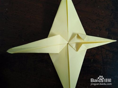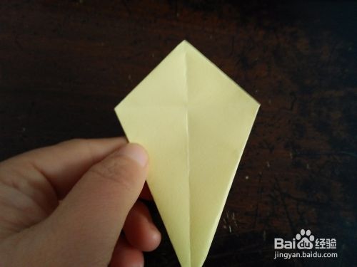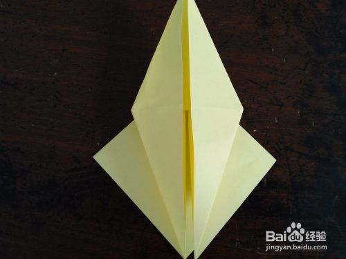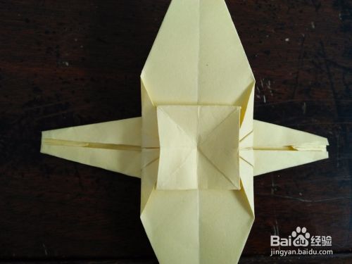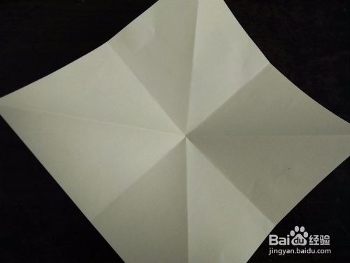 取一张正方形的彩纸。先把彩纸的对角线和中线分别对折,然后按照折痕折成图三的样子。