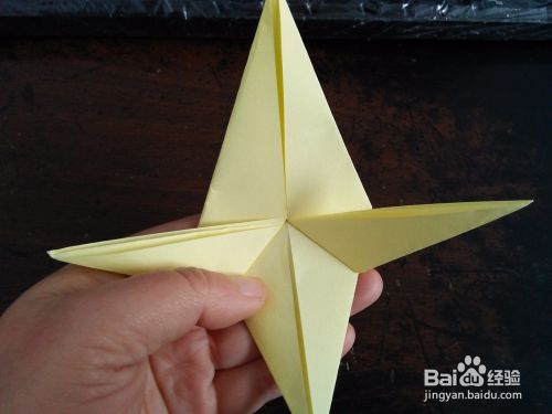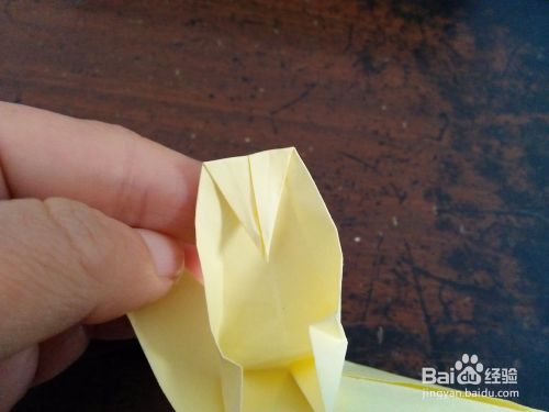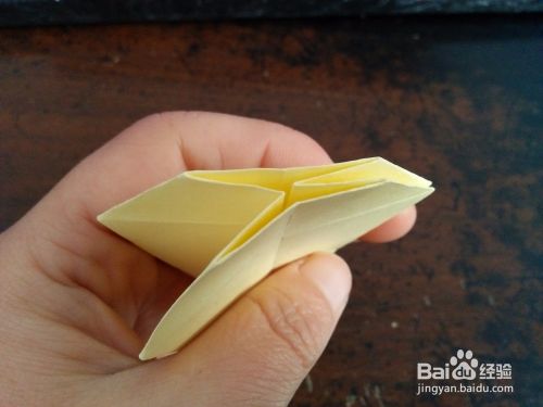把上边的角拉下来,然后看图二,把上边的角向下折。然后打开彩纸中间有个正方形。