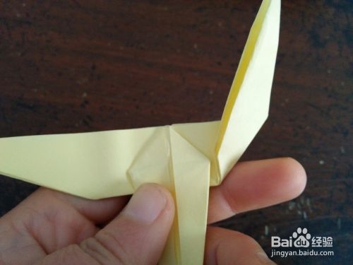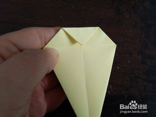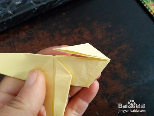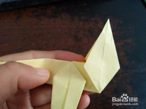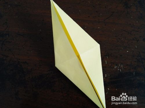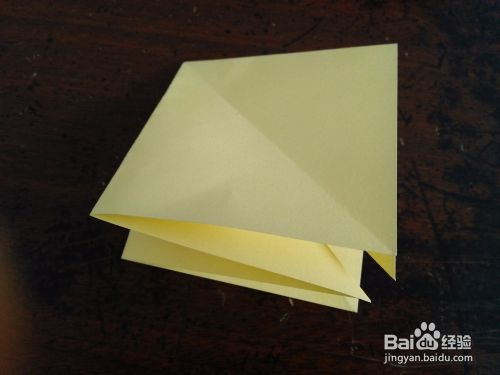 然后从中间对折,然后把右侧的角向上折。然后打开按照折痕折成图四的样子。
