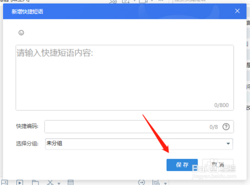 然后就可以在弹出的页面进行,快捷回复语的添加了,编辑完以后点击保存即可。