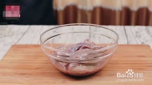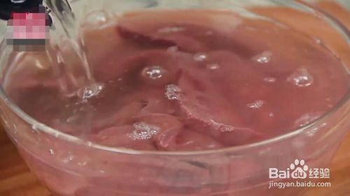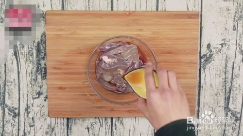 猪肝沥干水分后,放一勺料酒,