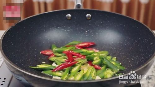 放入姜蒜、青红椒,炒香