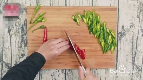 青椒、红椒切斜片,韭黄切末