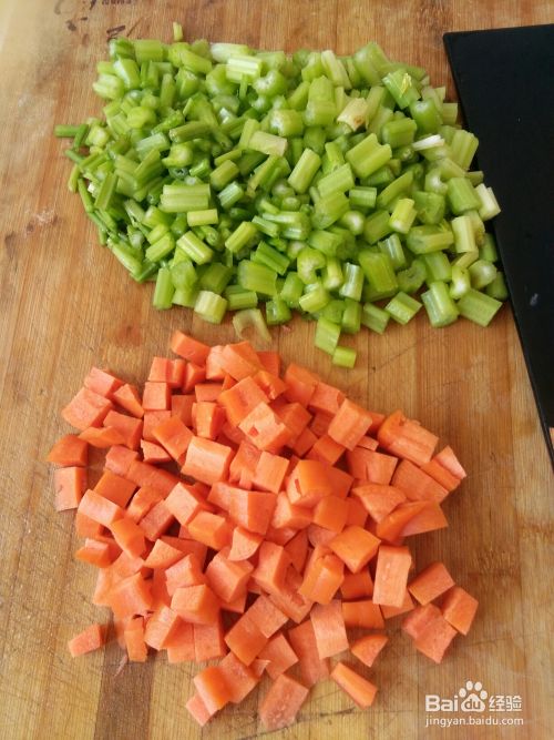 煮花生米的同时,把胡萝卜和芹菜洗净切丁或切段备用。