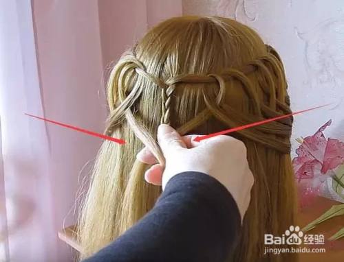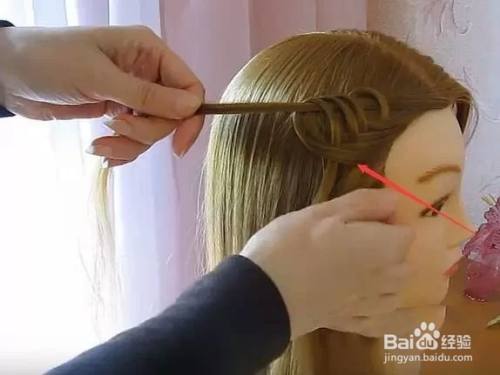 首先在头顶的一侧取一股头发,用一只手拉着,然后再取一股头发从第一股头发上面挽过去。