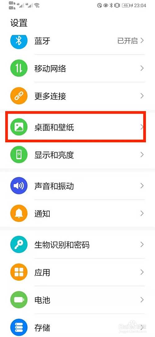 在华为手机设置页面,打开【桌面和壁纸】,如下图所示。