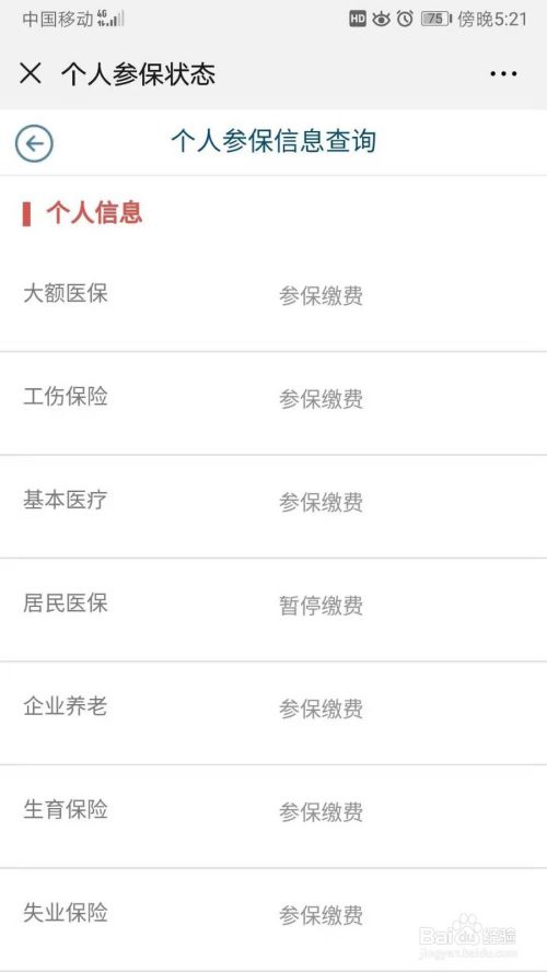 打开个人参保信息,就可以看到自己最近哪些保险正在参保,哪些暂停缴费,打开失业缴费明细,可以看到累计缴费月数,缴费时间,缴费单位,缴费类别,个人基数,个人缴费标志等,其他的打开同样可以看到详细的信息,希望对你们有帮助,谢谢