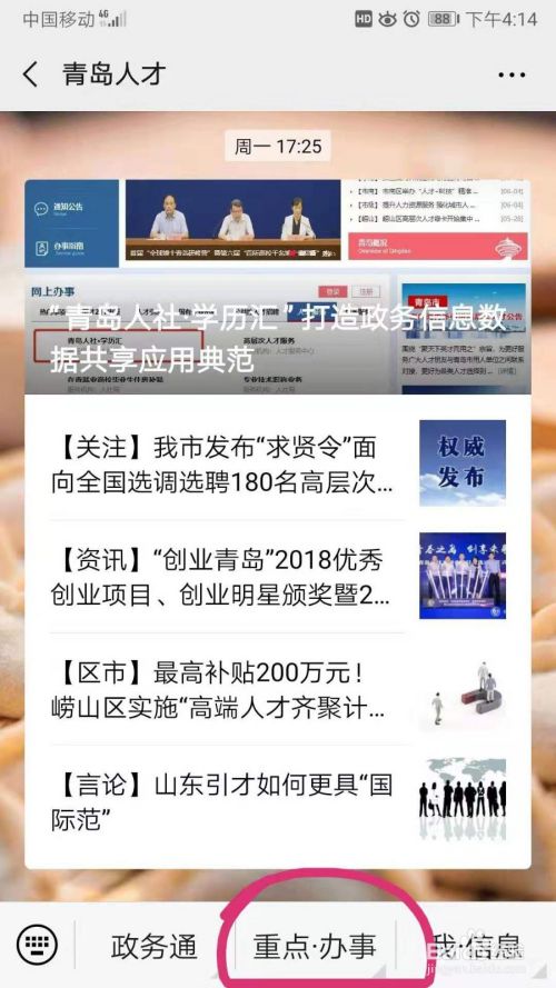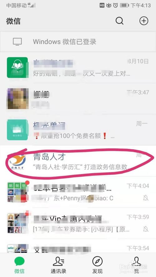 首先打开微信APP,搜索找到公众号“青岛人才”,打开公众号“青岛人才”;