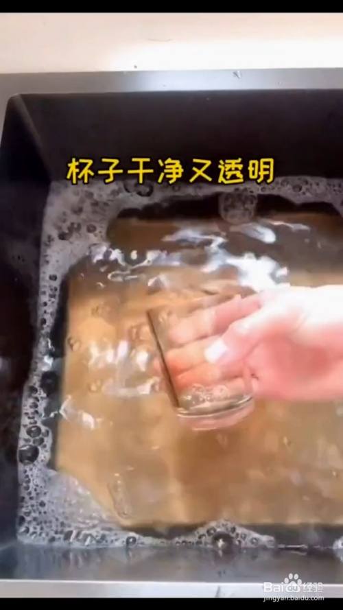 洗洁精和啤酒混合搅拌均匀,将茶锈的杯子放到水里,然后清洗一下,干净又透明。
